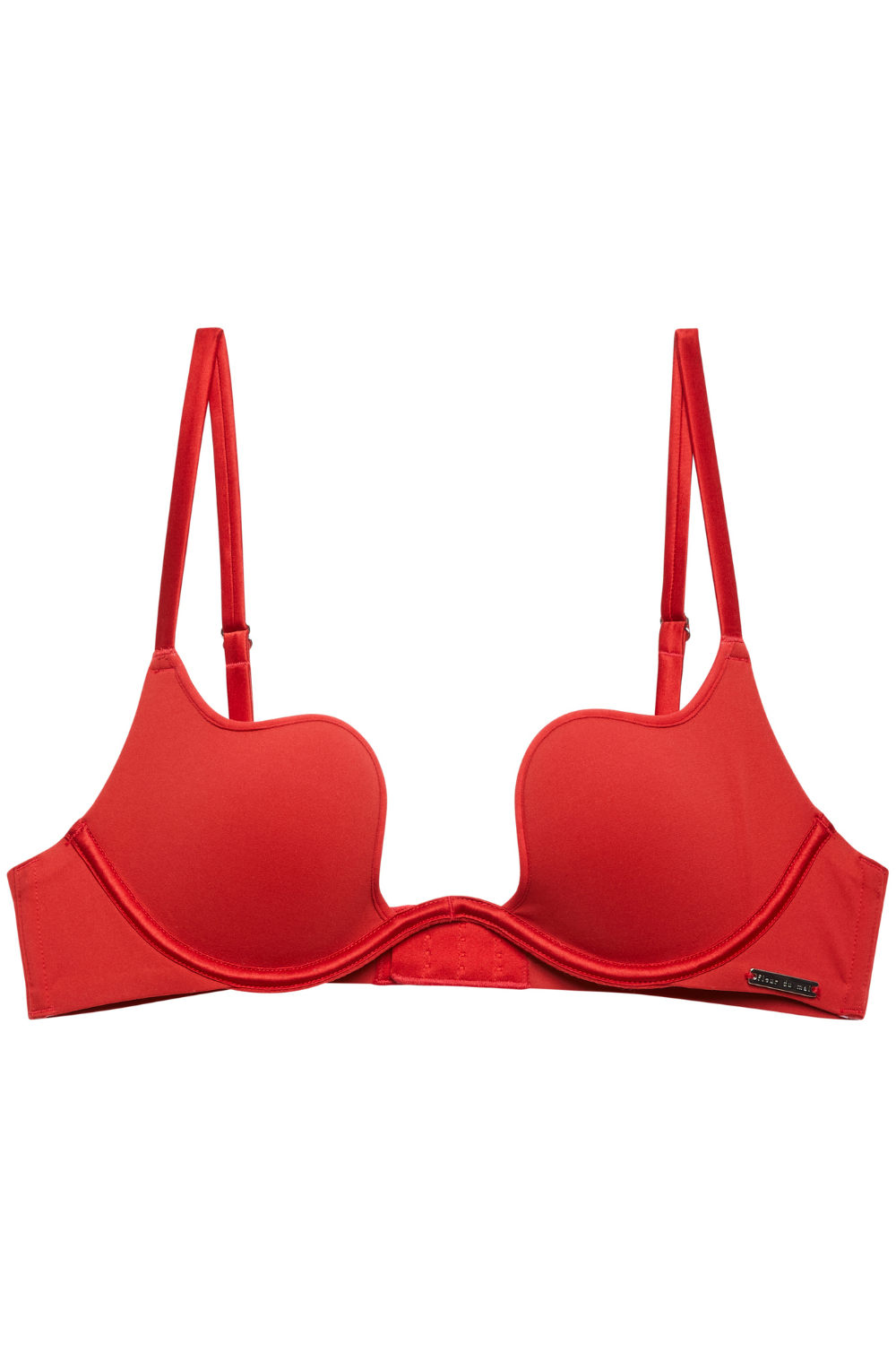 The Le Stretch Micro Rouge Seduce U-Plunge Bra offers a sophisticated blend of comfort and allure. Crafted from ultra-soft 4-way stretch microfiber, it features molded cups for a flawlessly smooth silhouette. Luxurious silk adjustable straps include discreet g-hooks to convert into a racerback style, enhancing versatility.
