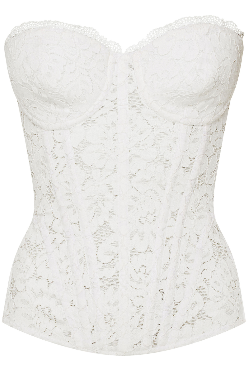 Effortlessly elegant and irresistibly feminine, the Cleves White Lace Corset by Maison Cadolle is a true work of Parisian artistry. This exquisite corset sculpts the silhouette with precision while exuding timeless bridal allure.