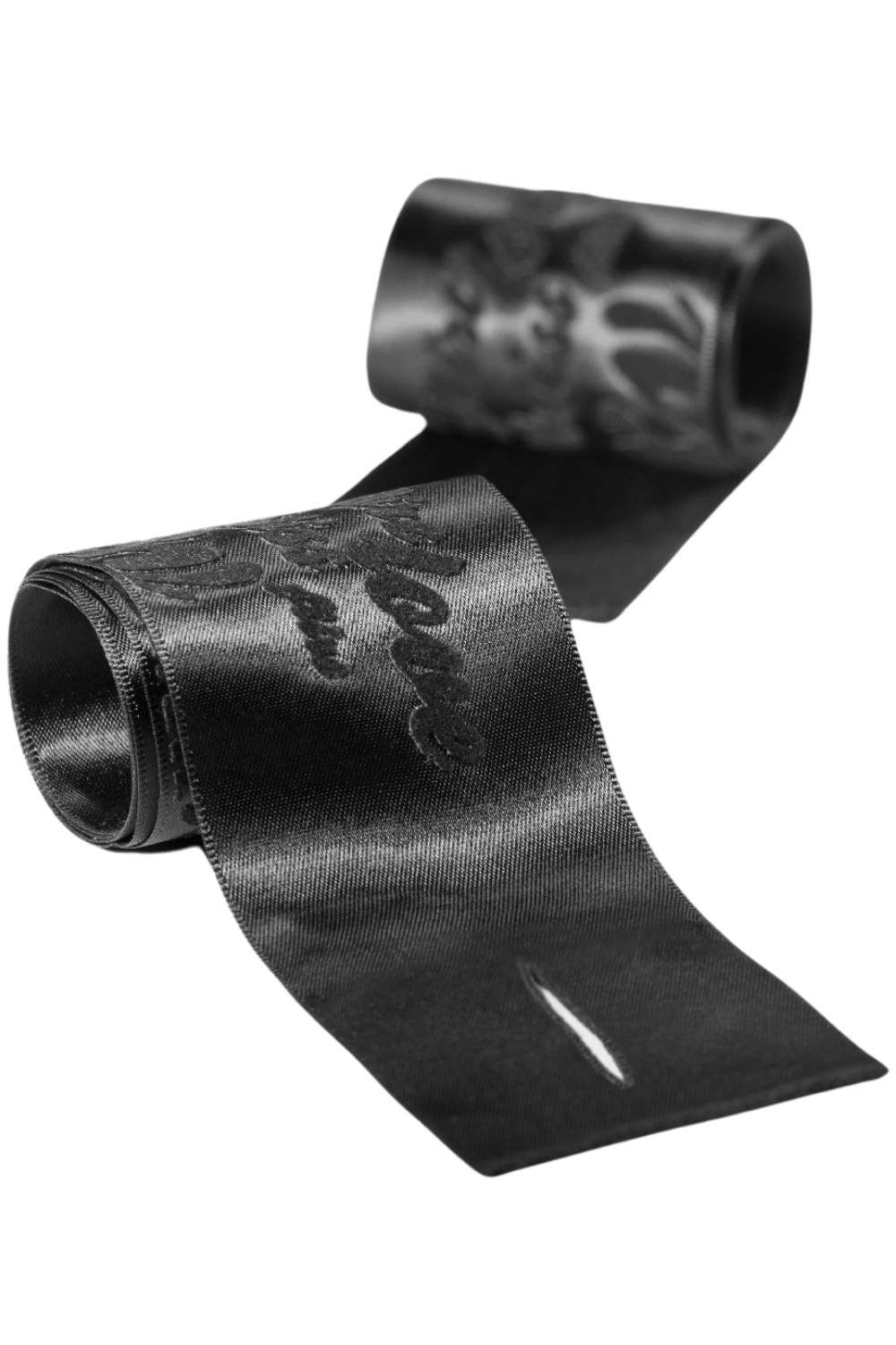 • Soft satin restraints for gentle bondage.