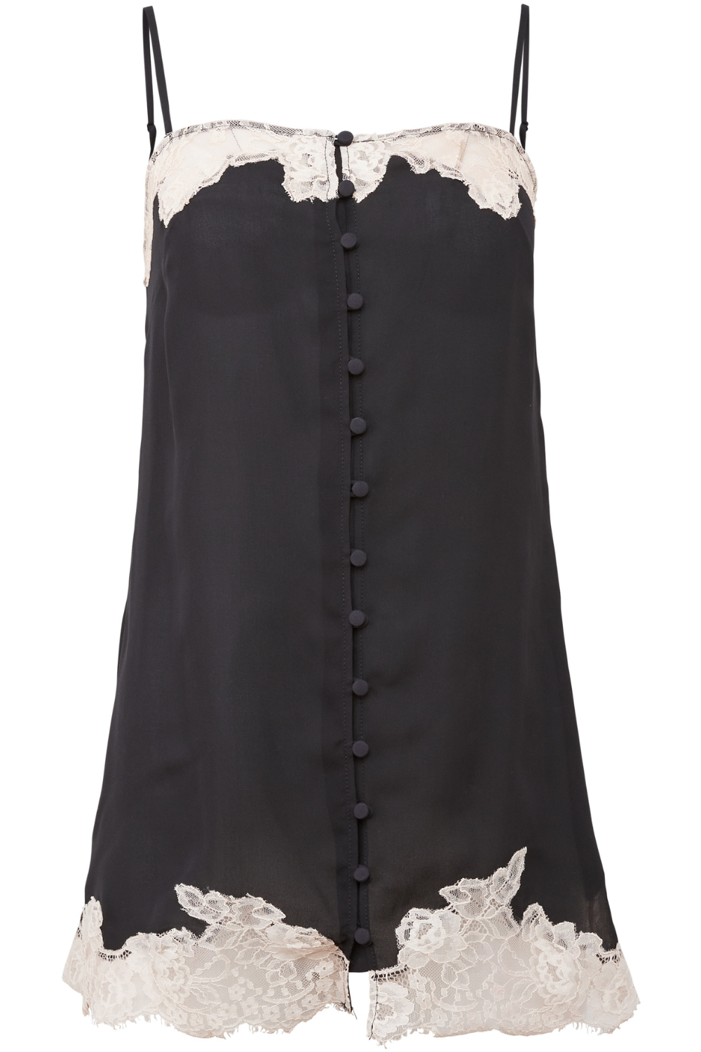 The Juliet Slip by Fleur du Mal is crafted from delicate black silk georgette, enhanced with intricate lace appliqué for a refined touch. A timeless piece that effortlessly elevates your nightwear collection.