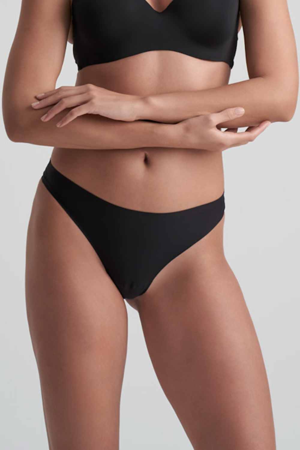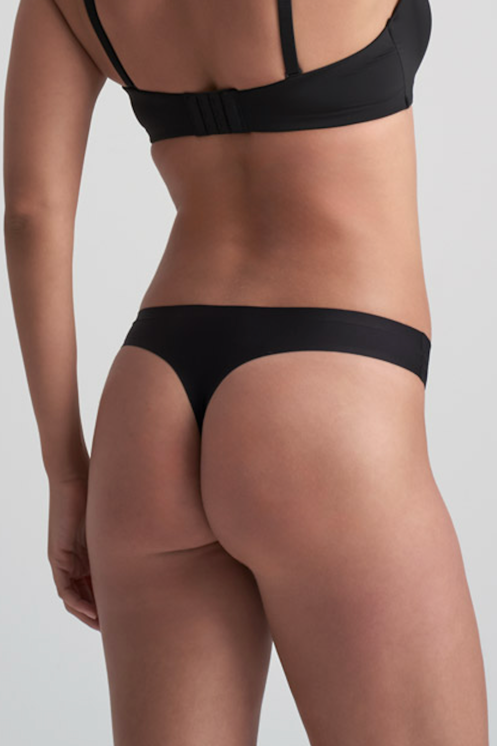 • Black opaque thong.