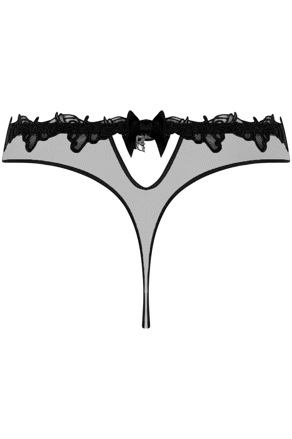 Lise Charmel Soir de Venise Mini Tanga Thong – Black Lace & Embroidered Tulle with Satin Bow & Crystal Mask Detail