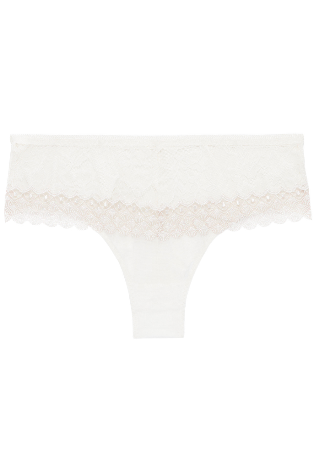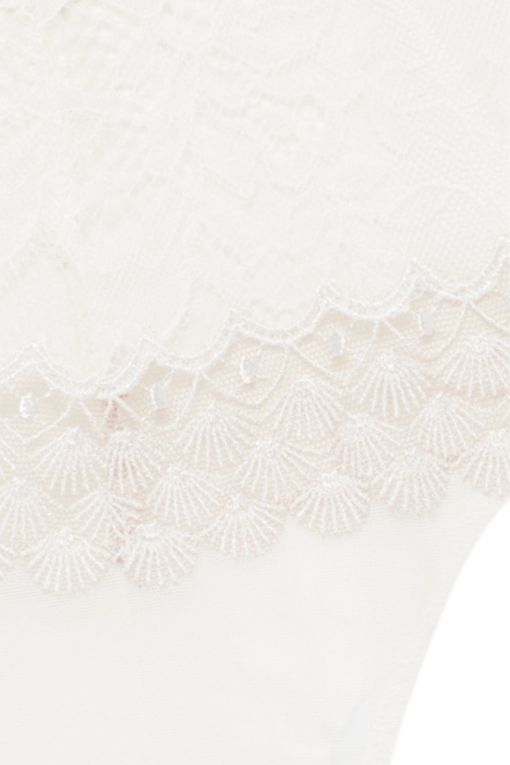 • Front in lace and embroidery with scalloped edges.