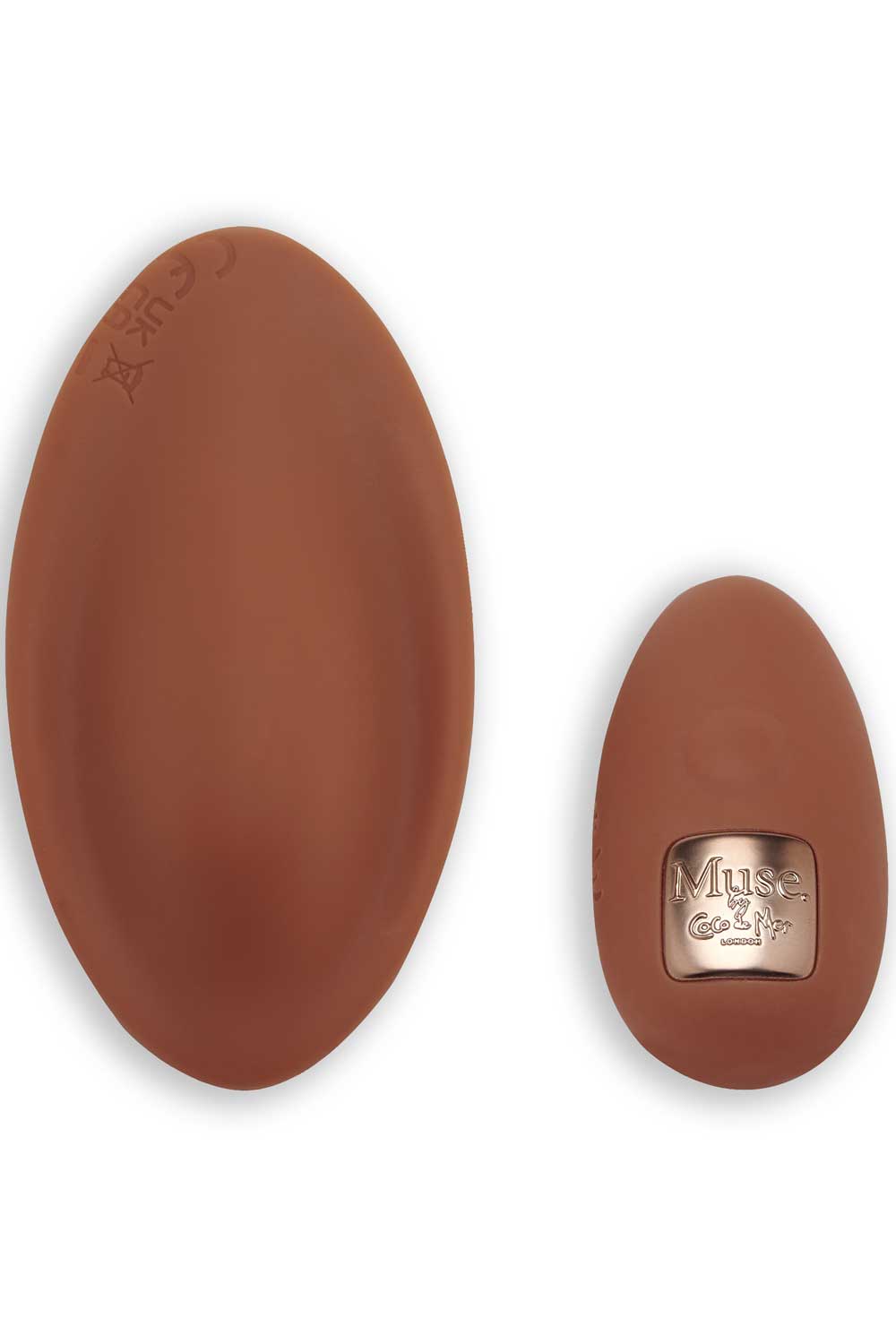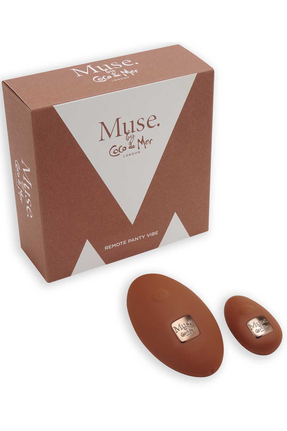 Explore wearable pleasure with the Muse by Coco de Mer Remote Panty Vibe. Coated in smooth silicone with ten vibration settings to explore, this sleek design fits inside your choice of knickers for discreet clitoral stimulation. Use the remote control for hands-free play alone or with a partner.