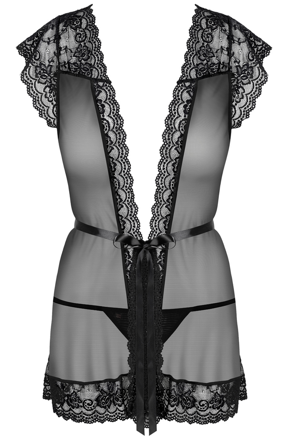 854 Sheer Black Robe & Thong, Size S-M (UK 8-10)