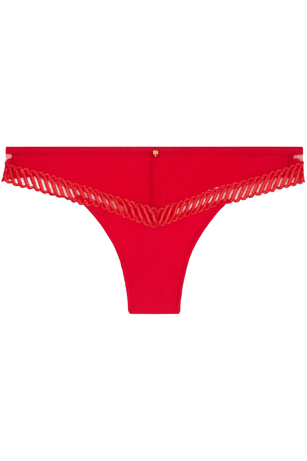 Seductive and comfortable, the Sheer Emotion Tanga Thong in flamboyant, seductive red features sheer tulle and bold embroidery up front, finished with a glimmering golden charm. The soft, smooth back ensures all-day comfort with no visible lines—luxury that’s as flattering as it is flirtatious.