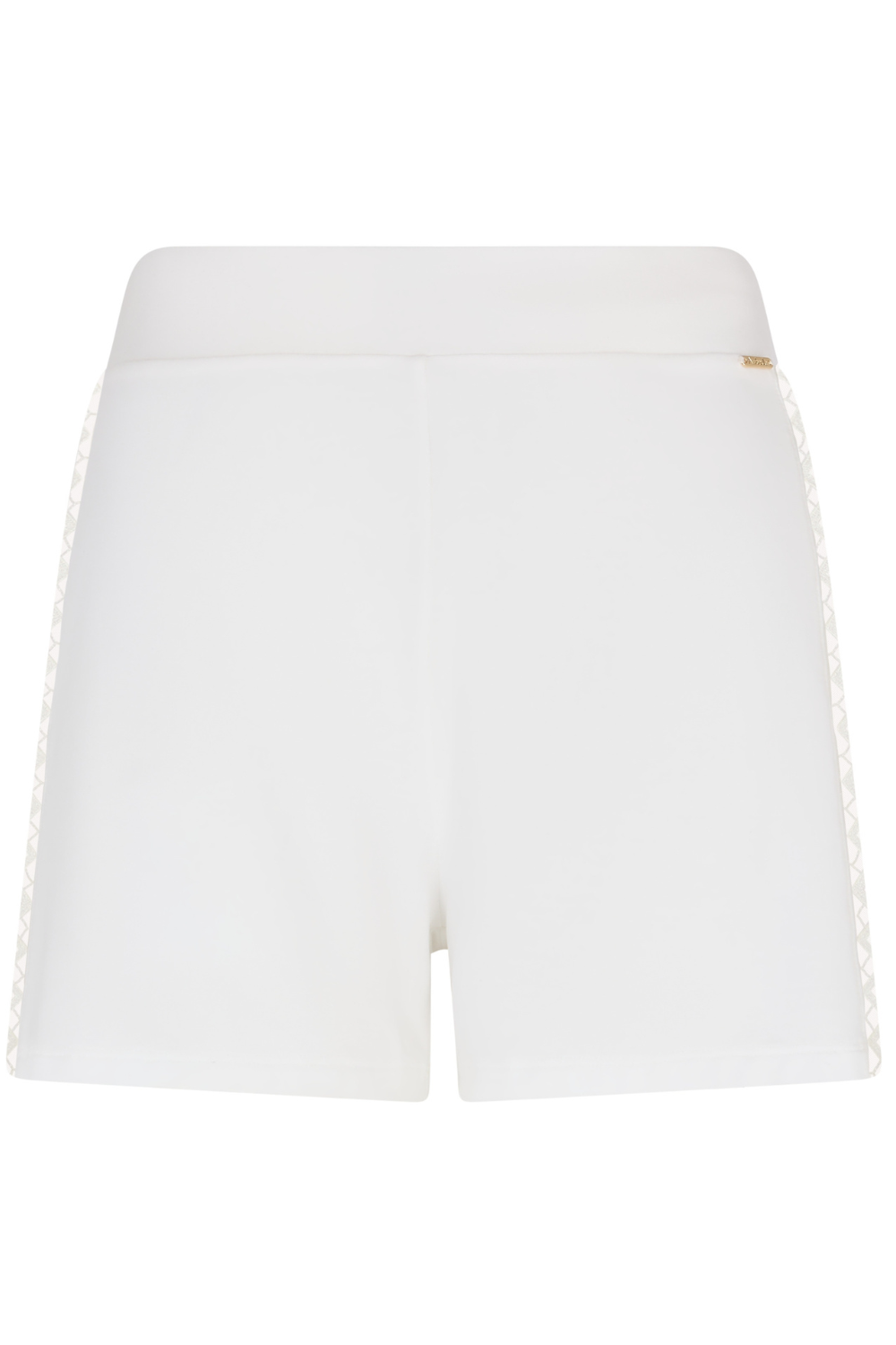 Chic and comfortable, the Sweet Obsession ivory Night Shorts are crafted from soft modal knit with embroidered braid at the sides, a smooth flat front waistband, and an elasticated back for a perfect fit.