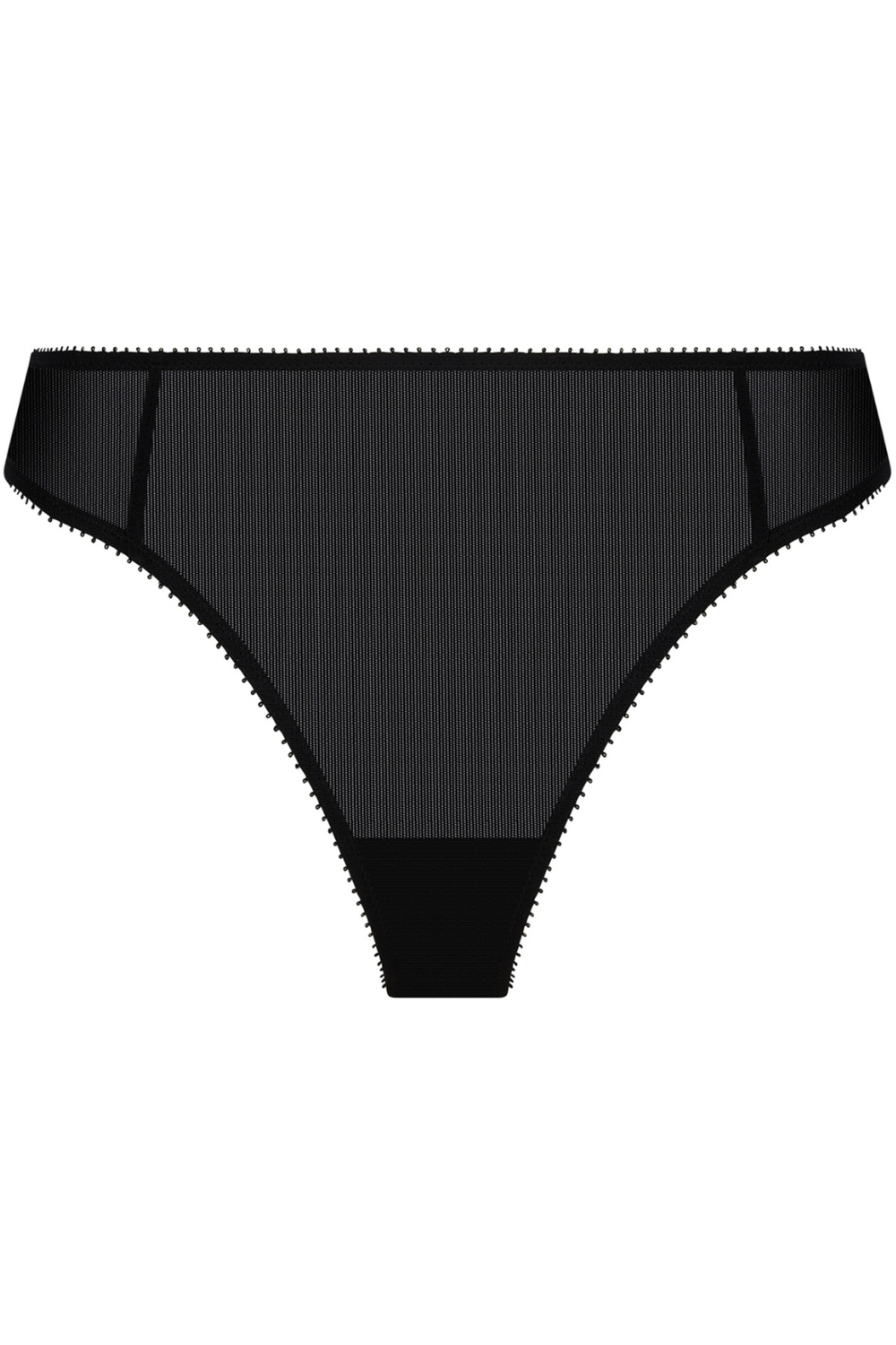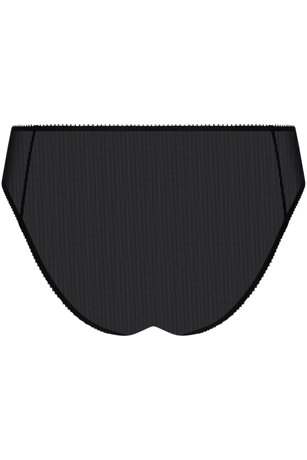 The Révélation Beauté Black Brief offers comfortable coverage with a gracefully elevated leg line that highlights the upper thigh, creating elegant, feminine contours. Crafted from delicate sheer tulle, this piece embodies modern refinement and sensuality, blending comfort with sophisticated style for everyday luxury.