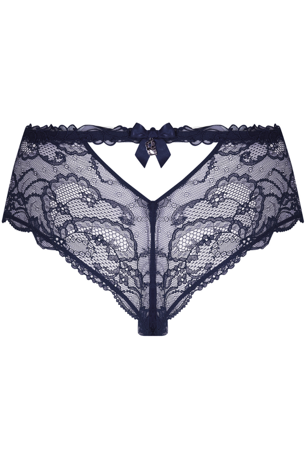 Lise Charmel Soir de Venise Shorty – Navy Calais Lace with Satin Bow & Crystal Mask Detail