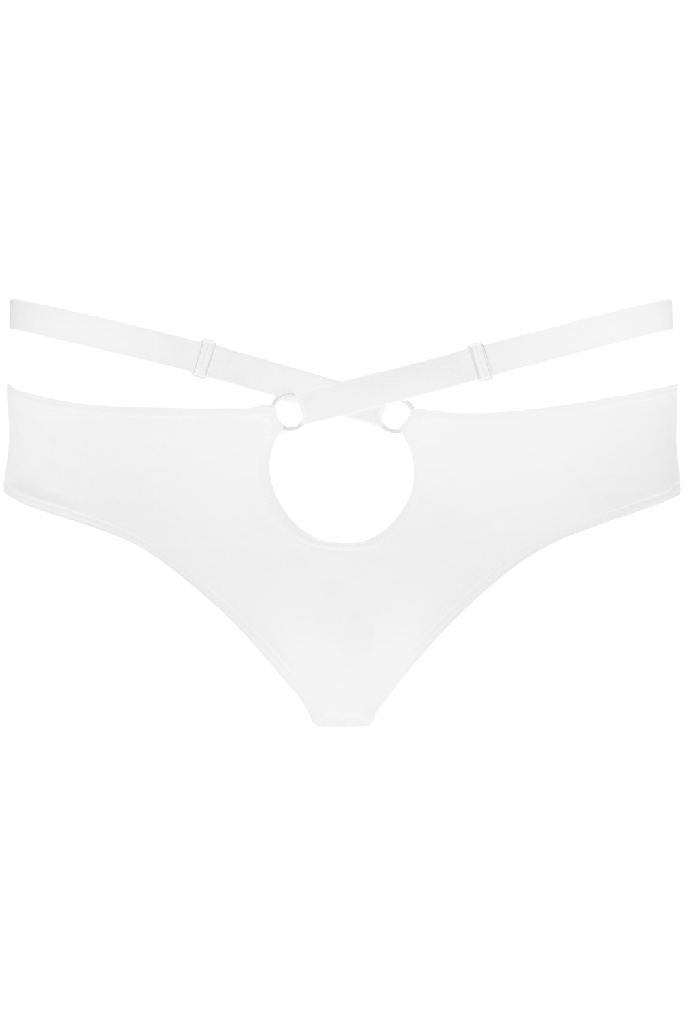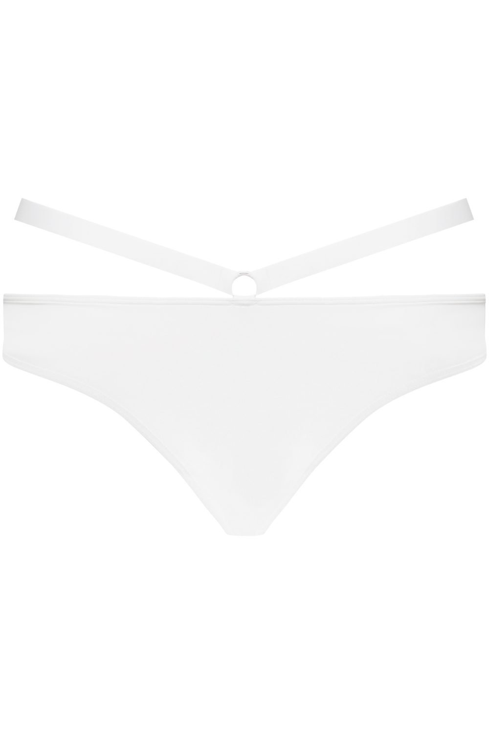 In glamorous white, the Fatale Tanga Bikini Bottom sculpts with soft microfibre and a high-cut fit. Adjustable strapping and a keyhole back create a sleek, graphic look. Finished with signature silver hardware and lined at the crotch for comfort.