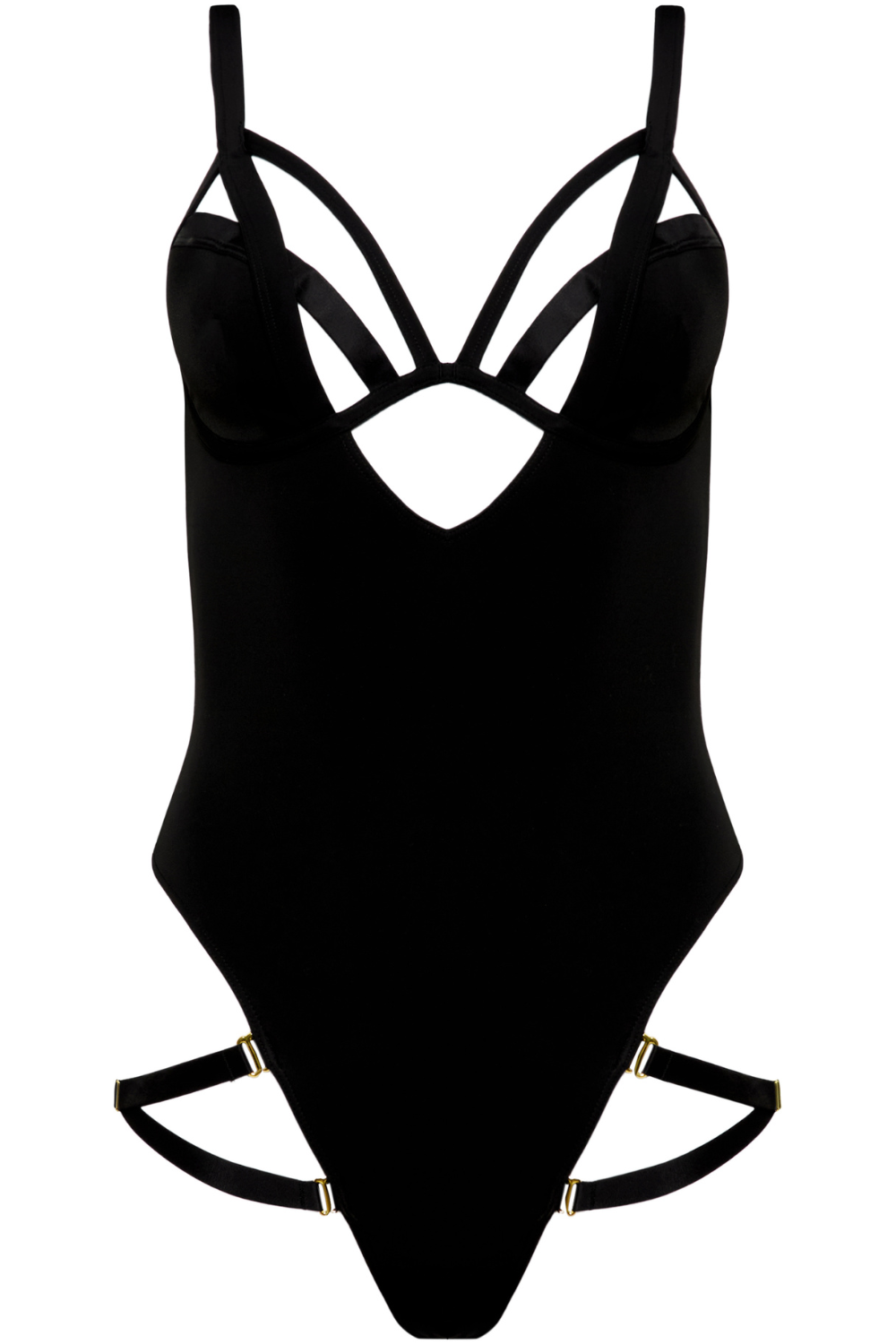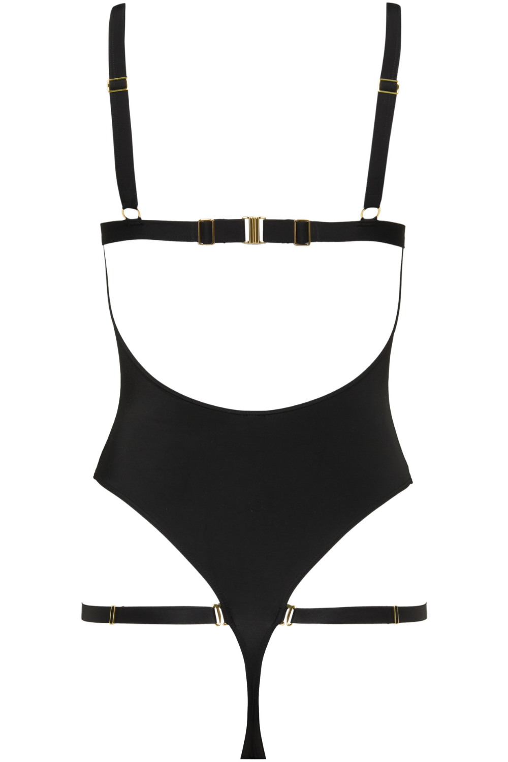 The Fatale Thong Swimsuit sculpts the body with a sleek, structured fit in soft microfiber. A mono-wire bustline, adjustable straps, and removable thigh elastics bring seduction and personalisation. Finished with gold-tone hardware for a luxe, daring look.
