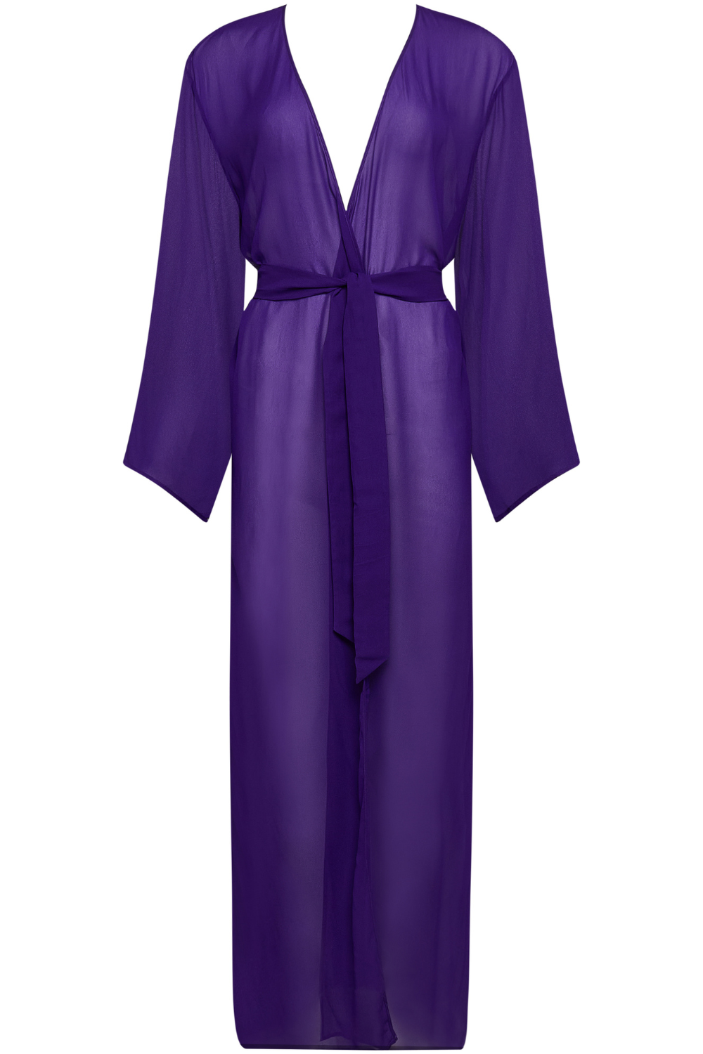 The Fever Kimono in vibrant violet is crafted from lightweight, semi-sheer viscose crepe. With wide sleeves and a flowing silhouette, it brings elegance and ease to beachwear. A removable belt defines the waist, making it a versatile piece for swim or resort styling.