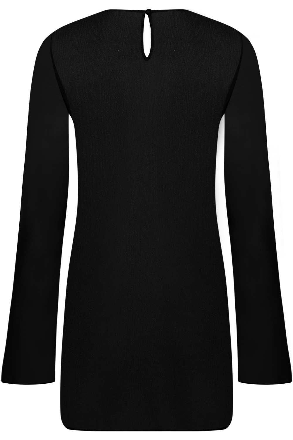 Crafted from fluid semi-sheer black viscose, the Fever Short Beach Dress by Maison Close is effortlessly chic. With a fitted mini cut, flared long sleeves, and a refined keyhole back, it offers lightness and elegance—perfect over swimwear or styled for warm evenings.