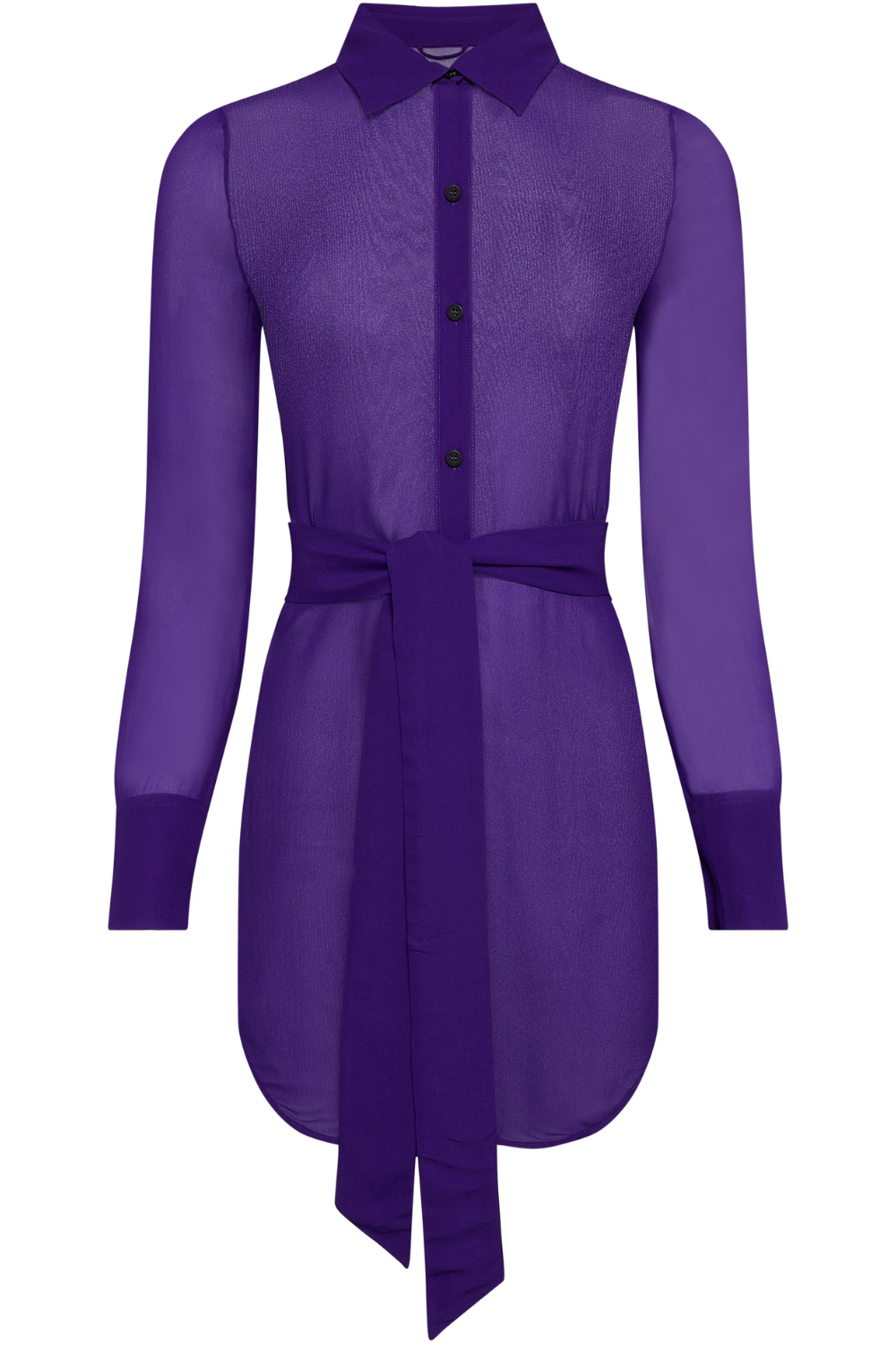 In striking electric violet, the Fever Shirt Dress by Maison Close is crafted from lightweight, semi-sheer viscose for a graceful, airy silhouette. With a curved hem, buttoned cuffs, and a removable belt, it’s perfect worn open over swimwear or styled as a chic dress.