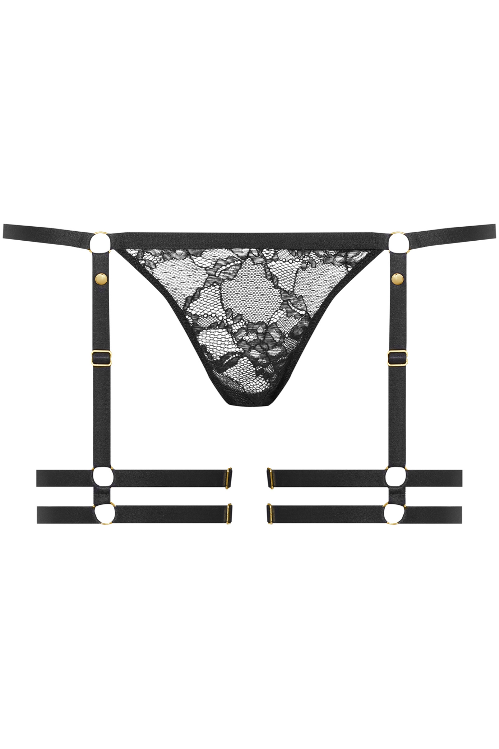 The Jeux Magnétiques Garter Mini Thong in black floral lace turns lingerie into a game. Adjustable, removable garters and a back magnetic opening let you reveal, tease, and play, making every gesture a daring act of desire.