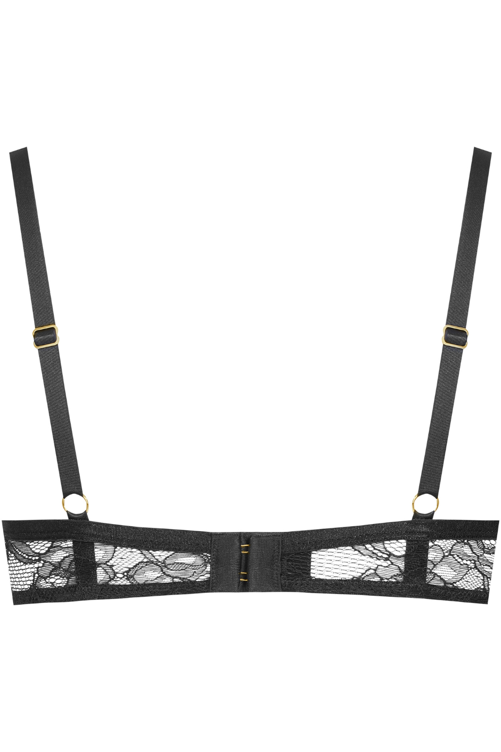 The Jeux Magnétiques Balconette Bra combines floral lace with underwired support, enhancing the bust. Golden magnets let you reveal or conceal at a single touch, turning every movement into a seductive, playful moment of desire.