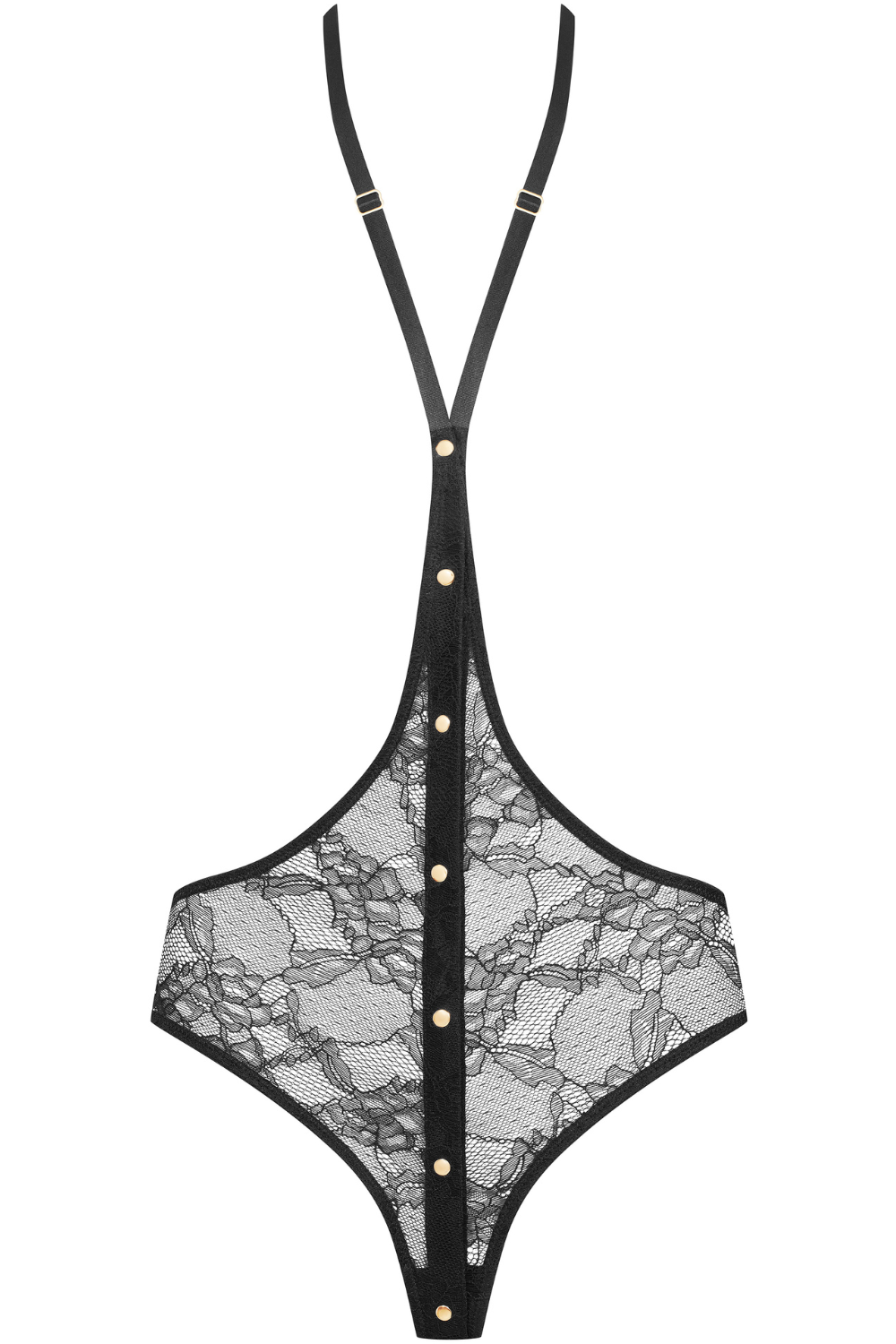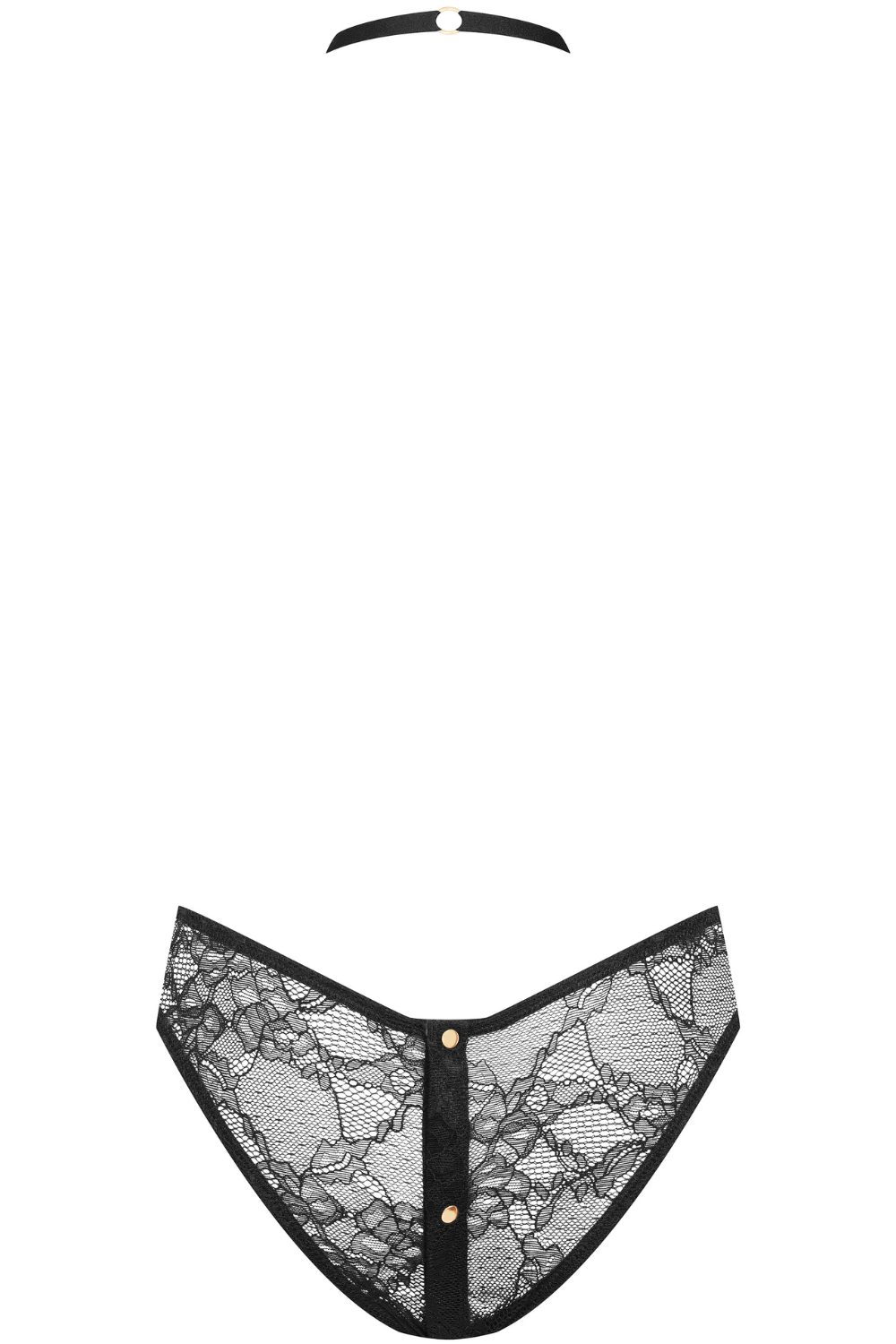 The Jeux Magnétiques Harness Brief drapes the body in floral lace. Golden magnets let you reveal or conceal with a single gesture, turning desire into a playful, intimate ritual of seduction.
