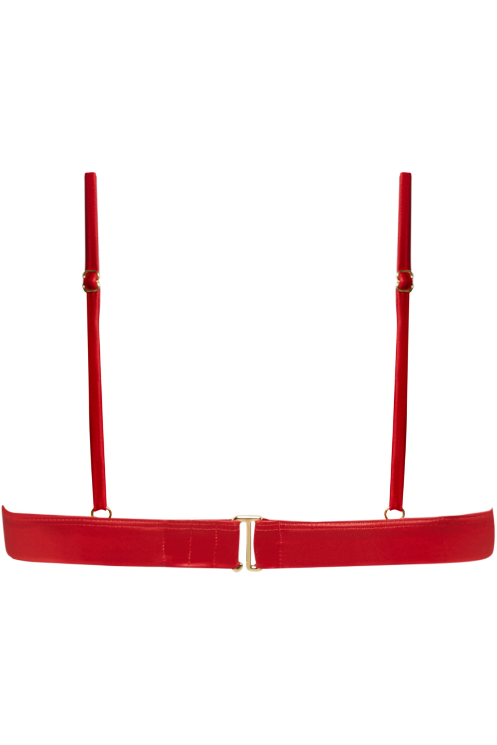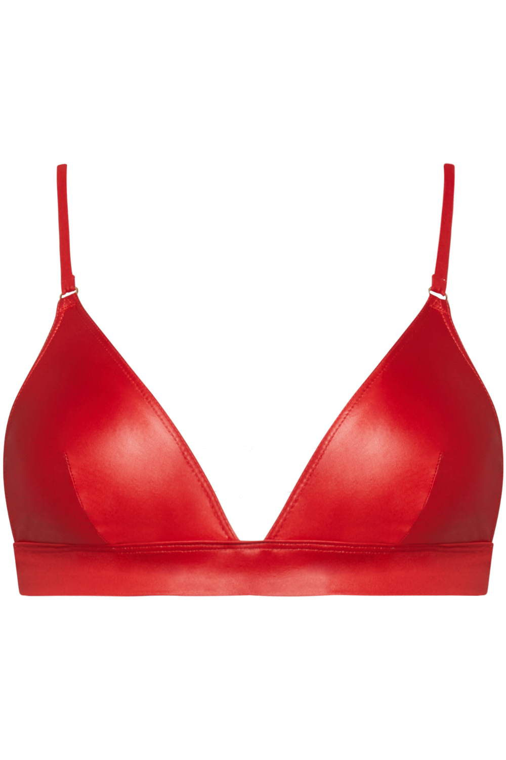 Bold and sensual, this red triangle bikini top is crafted in wet-look microfiber. Unlined and ultra-light, with gold-tone accents and adjustable straps for a flawless, sexy fit.