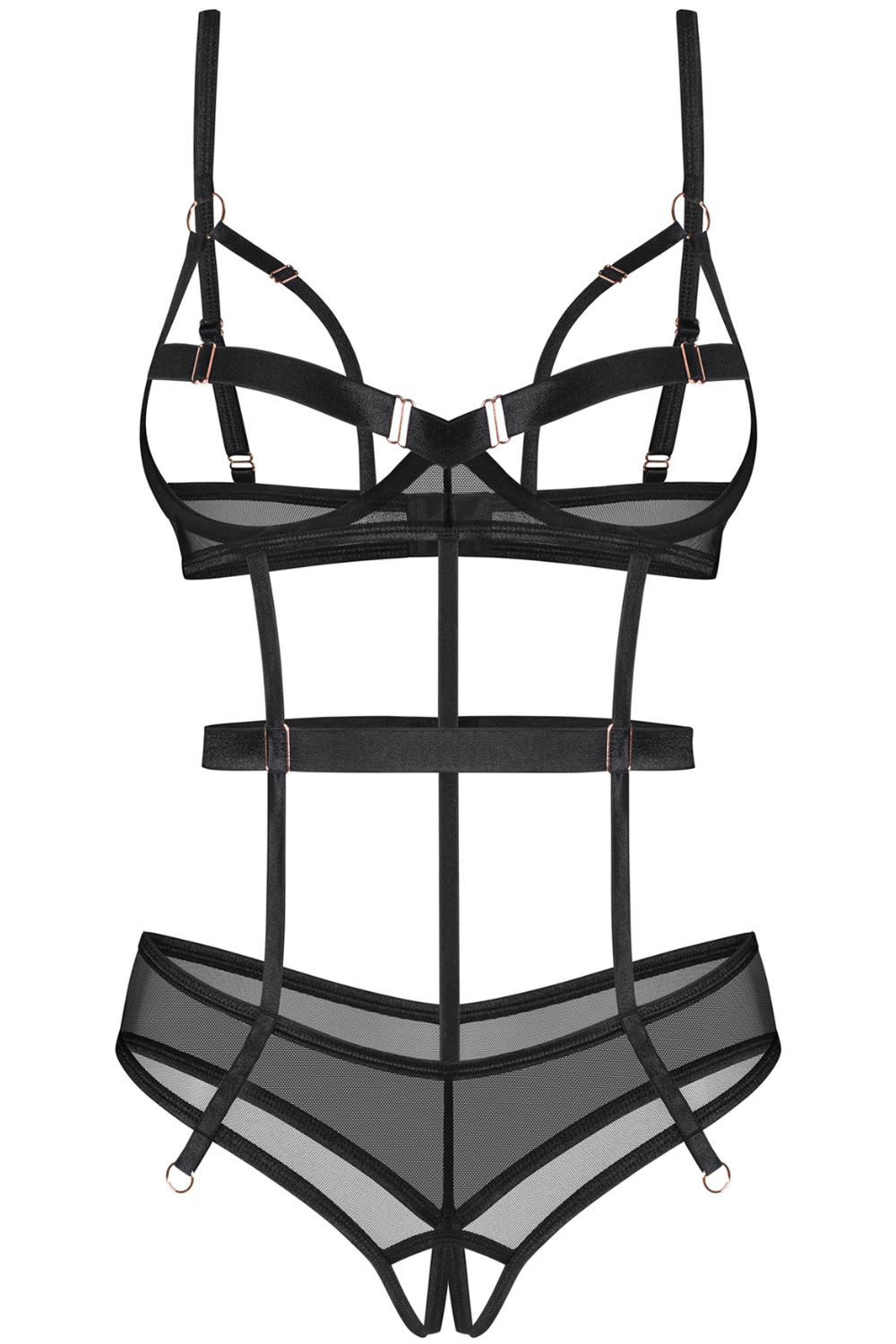 Embrace your bold side with the Euridia Bodysuit by Obsessive. Featuring daring cutouts and an open crotch design, this black body highlights your natural curves while adding a playful edge. Perfect for turning up the heat and feeling irresistibly confident.